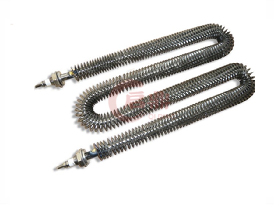 翅片式电加热管,是在普通元件表面缠绕金属散热片,与普通加热元件相比散热面积扩大了2~3倍,即翅片元件所允许的表面功率负荷是普通元件的3~4倍。
