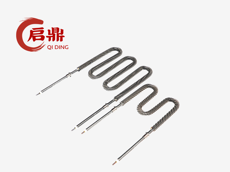 翅片式电加热管,是在普通元件表面缠绕金属散热片,与普通加热元件相比散热面积扩大了2~3倍,即翅片元件所允许的表面功率负荷是普通元件的3~4倍。