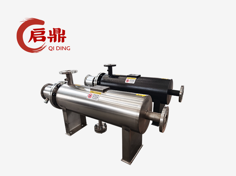 管道加热器分为两种模式:一种是采用管道加热器内部的法兰式管状电热元件倒插在管道加热器中的反应釜夹套中加热导热油,将管道加热器中的热能传输给管道加热器内部反应釜中的化工原料。还有一种方式是直接在管道加热器中的反应釜中插入管道加热器中的管状电热元件或在管道加热器的壁四周均匀分布电热管。这种模式称为管道加热器的内热式。管道加热器的内热式升温快、效率高。